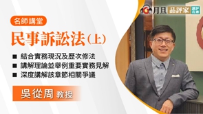 (1) 共同訴訟 A. 「主參加訴訟」類型(權利主張型、權利詐害型)、效力及如何審理 B. 共同訴訟各類型效力(§55~§56講解) C. 「事實上無法得同意」公式及民訴§56-1實際應用狀況講解 (2) 共同訴訟型態爭議事件分析 A. 【連帶債務】-類似必要或普通共同訴訟?(兼論民法§275及§280) B. 【確認他人法律關係】-類似必要或固有必要訴訟?(82年2決、93台上117判決及95台上1295判決) C. 【公同共有債權】-類似必要或固有必要訴訟?(兼論借名登記事件、民法§831及104年3決) (3) 訴訟參加:簡述民訴§58、§65、§67-1及其適用效力 |