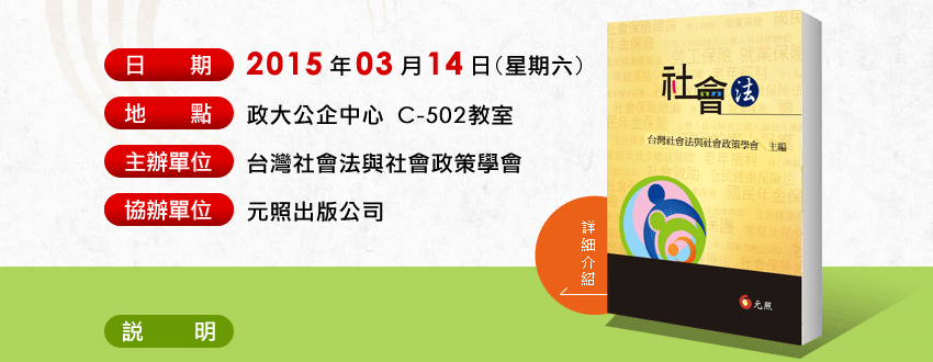 此場新書發表會,以核心價值“建構福利社會國的法制”為基礎,由本書作者作一篇章的闡述,書中精華精闢呈現,精彩可期。 |
