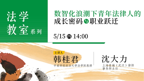 在數智化浪潮的大背景下,法學教育如何兼顧學術素養與實踐能力?青年法律人在職業選擇中,又該如何將社會擔當融入其中?大學生的就業權益,怎樣通過憲法與勞動法得以保障?本次講座,中南財經政法大學法學院韓桂君教授將圍繞三個核心維度展開。其一,博雅教育與法學實踐:探索法學本科生怎樣通過人文通識教育培育批判性思維,並在實習及公益法律服務中實現專業價值。其二,就業困境與三方協議:解析當下法學就業市場面臨的挑戰,厘清勞動合同和三方協議中的法律風險及應對策略。其三,憲法與勞動法原則:從“勞動權”的憲法保障出發,結合勞動法案例,揭示職場中的公平就業、反歧視等核心原則。 同時,法律行業正面臨生成式AI的挑戰與新領域需求激增的雙重變革。本次講座特別邀請上海星瀚(武漢)律師事務所主任沈大力律師作為分享嘉賓,聚焦青年法科學子在當前時代,如何化“危”為“機”,從職業思維轉型、差異化競爭力打造到技能升級,系統性解析數智時代的突圍路徑。同時,針對大學生求職技能、職業躍遷規劃等痛點,結合模擬案例與互動答疑,助力青年法律人明晰方向、提升核心競爭力。