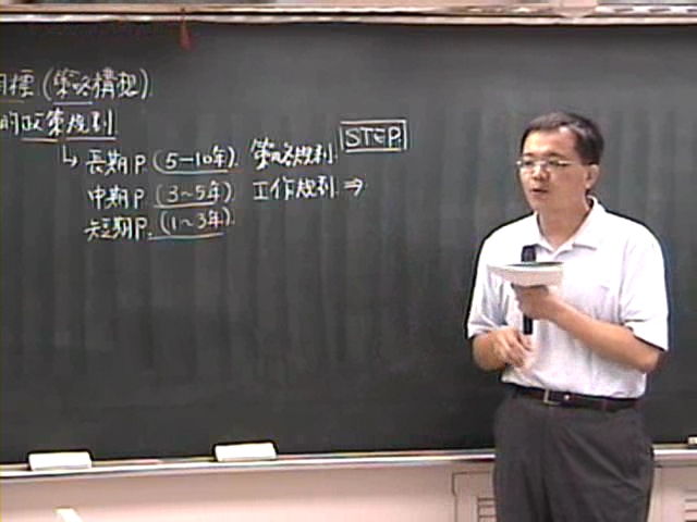 ‧导论‧辩证逻辑‧管理者角色‧管理观念的演进与发展过程‧策略与组织‧人力资源管理‧环境‧组织‧CASE‧招募-评估方法‧测验‧教育训练定义-技术训练‧知识训练-训练成果的评估‧沟通、激励与领导‧期望理论‧期望理论架构‧增期架构‧退职‧退休福利‧保险福利‧工会组织‧平衡计分卡